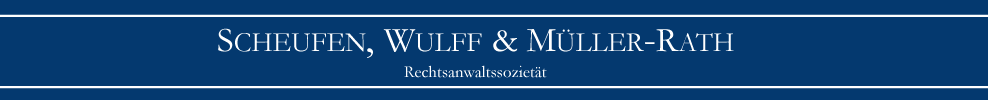 Unsere Kanzlei besteht in Berlin-Charlottenburg seit 1988. In dieser Zeit haben die Rechtsanwälte Scheufen und Wulff als Kanzleigründer ein schlagkräftiges Team aufgebaut und – seit 1997 verstärkt durch Rechtsanwalt Dr. Müller-Rath – Kompetenz gerade auch im Bereich der als Schwerpunkte bearbeiteten Rechtsgebiete erarbeitet.